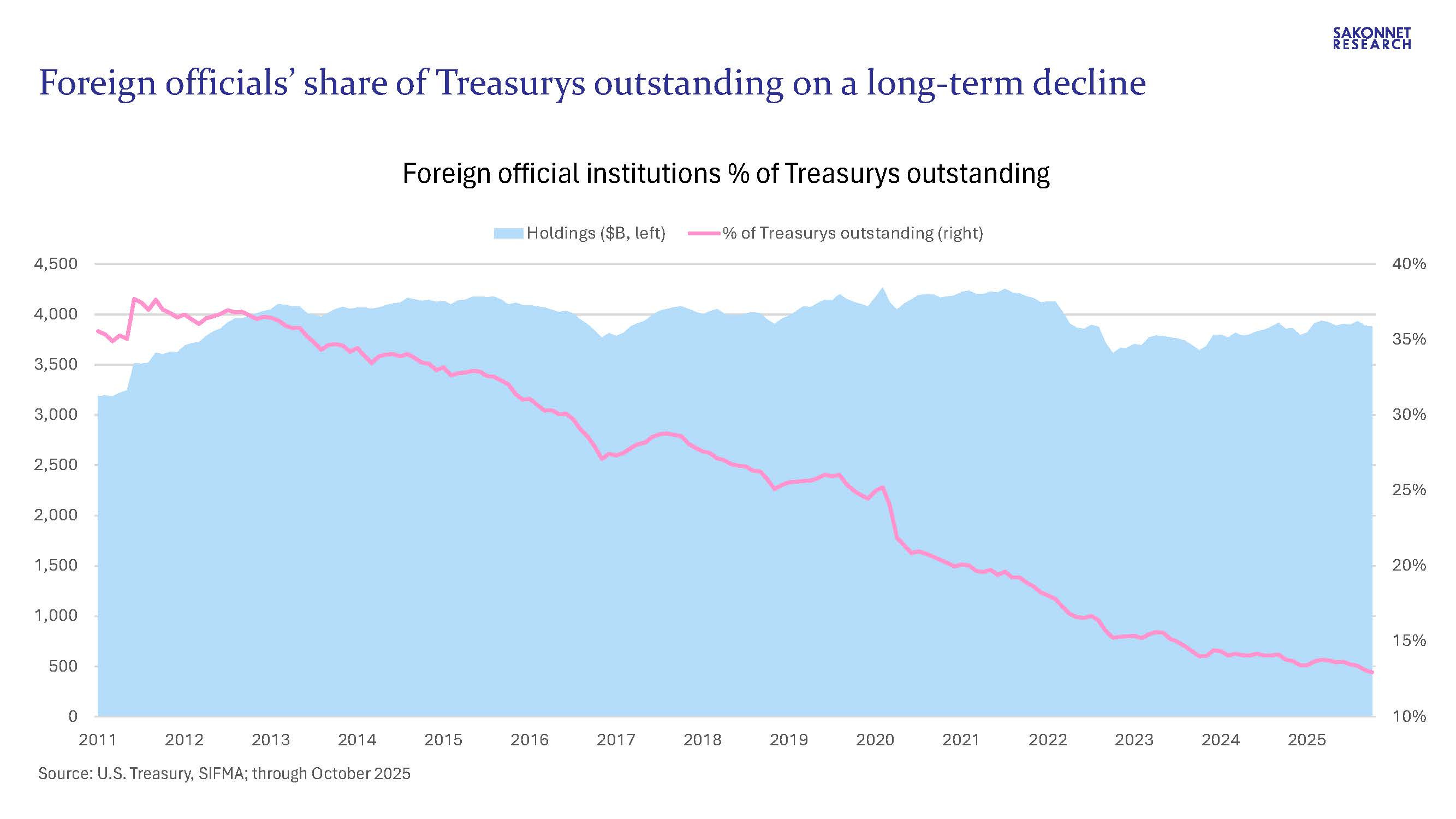 Το κύριο στοιχείο – το ιστορικό ρεκόρ των 9,36 τρισ. δολαρίων σε ξένες τοποθετήσεις σε U.S. Treasuries – σηματοδοτεί μια ισχυρή επαναβεβαίωση του δολαρίου ως «ασφαλούς καταφυγίου», καθώς οι νομισματικές πολιτικές της αποδολαριοποίησης εκ μέρους του Παγκόσμιου Νότου εξελίσσονται.